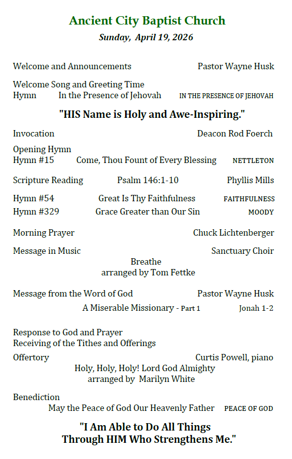 April 19, 2026 - Sunday Service Bulletin